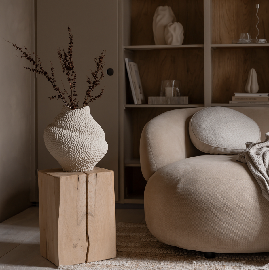 Cooee “Drift vaas” – 17cm ja 30cm. Cooee vaaside sarjast kõige uuem tulija, vaasi tekstuur karedam ja liivasem, värvivalikus vanilje ja pepper. Kevadel 2021 pakume valikus ka sama sarja vanilje toonis vaasi suurusega 55cm.